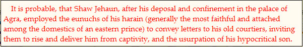 AURUNGZEBE TO SHAW JEHAUN IN