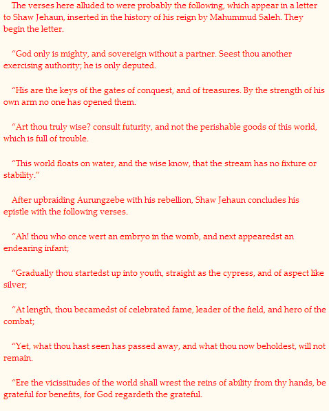 to Shah Jahan in agony provides